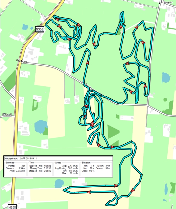 Even een update. Track is 99% klaar. Vanochtend voor gereden voor NK Jeugd Enduro. Track is 9,9 KM. De rijtijd is ~17 minuten. Route tijd wordt gesteld op 30 minuten, dus de jeugd enduro rijders hebben ruim 10 minuten in de service. Film van gehele route + proef op: https://youtu.be/NPCB6FZtp8A